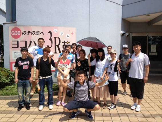 入口で記念撮影、3R(Reusee/Reduce/Recycline)にみんなで取り組もう!!
