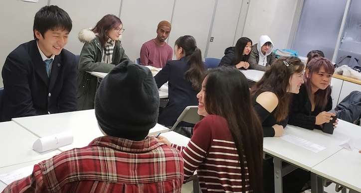 昨年10月に来日した留学生にとっては、初めての交流授業でしたが、少人数グループに分かれて、