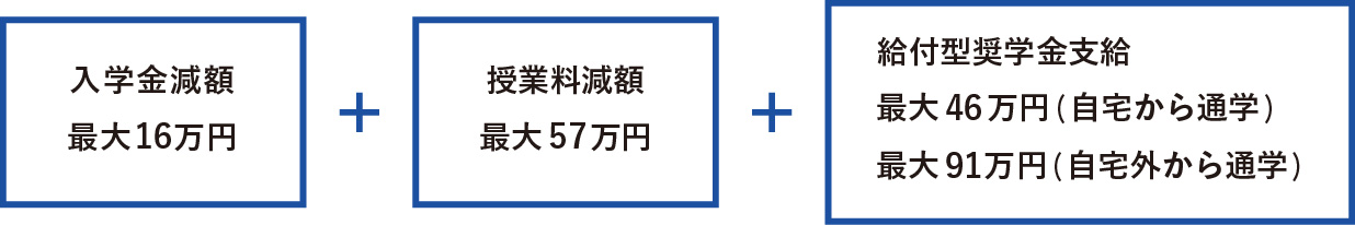 給付型奨学金の申込み ![]() | 採用候補としての決定 ![]() | 授業料等減免の申込み ![]() |